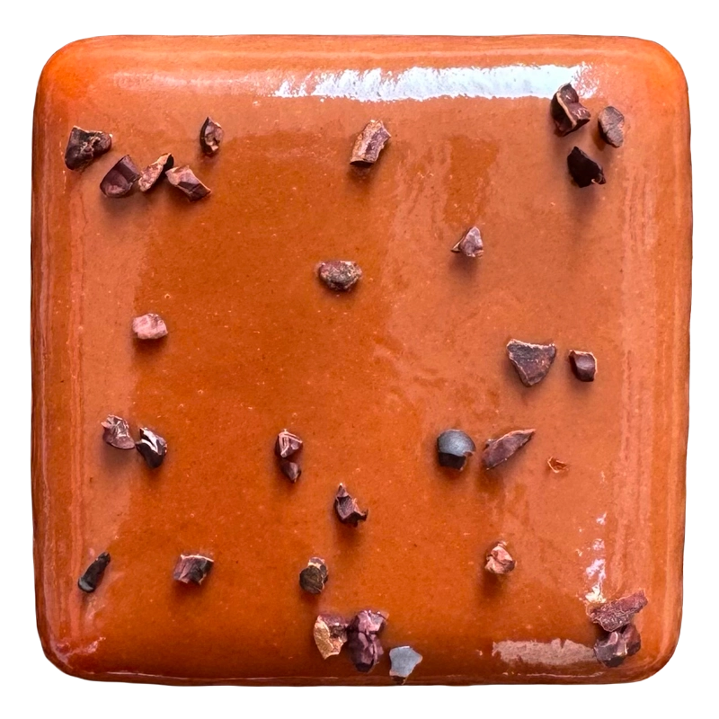 Croustillant café, biscuit chocolat, crémeux chocolat au lait et café, feuille craquante au chocolat noir et mousse café.